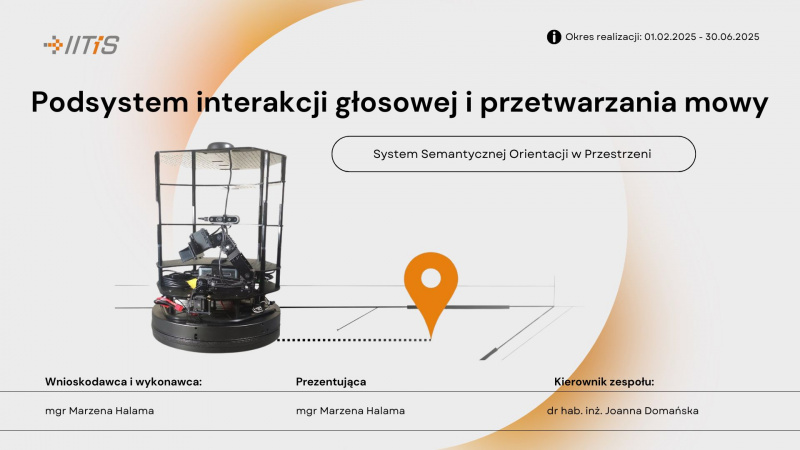 Podczas seminarium zaprezentowane zostaną wyniki realizacji projektu badawczego, którego celem było opracowanie podsystemu głosowej interakcji człowiek-robot. Zrealizowany system integruje nowoczesne technologie przetwarzania mowy, rozpoznawania i generowania odpowiedzi za pomocą dużych modeli językowych (LLM, np. GPT-4). W trakcie wystąpienia omówione zostaną m.in.: zastosowane metody automatycznego rozpoznawania mowy i ich skuteczność w warunkach akustycznych o różnym poziomie zakłóceń, odpowiedź na pytanie badawcze dotyczące zdolności modeli LLM do zachowania trafności odpowiedzi mimo niepełnego zrozumienia wypowiedzi użytkownika.